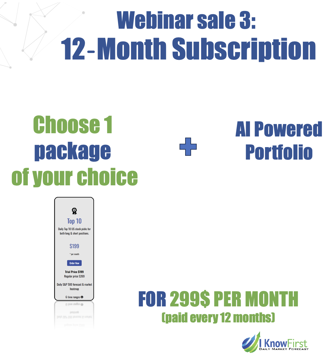 At I Know First, we continue to empower investors with cutting-edge AI forecasting tools that have consistently outperformed the market. Following our most recent live webinar, we are excited to offer 3 exclusive deals tailored for investors ready to gain their edge.