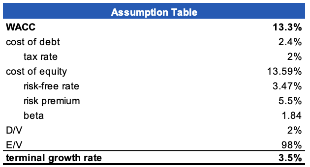 - The terminal growth rate is assumed at 3.5%, which is the average GDP growth rate.