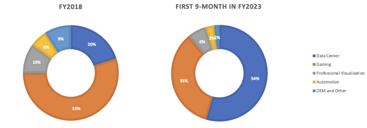 NVDA serves five specialized markets and the performance for each market in the first 9-month of FY 2023 showed as follows: